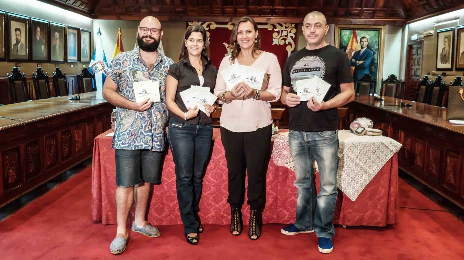 En el acto de presentación estuvieron presentes la concejala de Educación e Igualdad, Diana Mora, el representante de la empresa Drago Creative, Adrián Fresneda, la docente de Danza, Adriana Medina, y el maestro artesano de roseta y calado canario, Antonio Rodríguez, estos tres últimos serán docentes en varios talleres y cursos que se impartirán en la Universidad Popular.