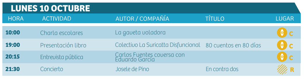 Resúmen de actividades para el lunes 10 de octubre: