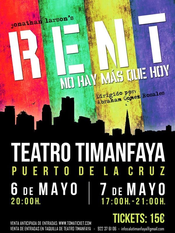 «Somos Compañía prepara el musical «Rent», ambientado en «La Bohéme» de Puccini, que se estrenará el 6 y 7 de mayo en el teatro Timanfaya, donde un grupo de gente luchadora vive la pasión, droga, amor, poesía, dinero, muerte…»